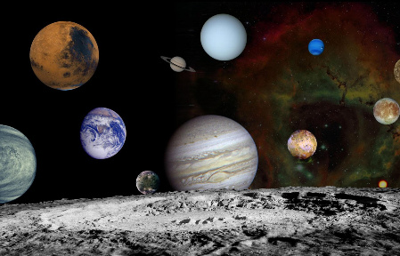 Venus, unde efectul de serã necontrolat a transformat-o într-un fel de iad. Marte...lume care are la fel de mult teren ca însuși Pãmântul. O centurã de asteroizi care înconjoarã Soarele între orbitele lui Marte și Jupiter. Cu patru luni gigantice și câteva zeci mai mici, Jupiter, este ea însãși ca un sistem solar. Are mai multã masã cât toate planetele la un loc. Marea Patã Roșie a lui Jupiter... Un uragan de trei ori mai mare decât mãrimea planetei noastre care este furios de mai multe secole. Bijuteria coroanei sistemului nostru solar, Saturn, înconjuratã de nenumãrate autostrãzi cu bulgãri de zãpadã autostrãzi cu bulgãri de zãpadã care se rostogolesc încet... Fiecare bulgãre, o micã lunã. Uranus... și Neptun. Cele mai îndepãrtate planete, necunoscute celor din vechime și descoperite doar dupã inventarea telescopului. Dincolo de planetele cele mai îndepãrtate, se aflã un roi de câteva zeci de lumi înghețate. Și Pluto e una dintre ele.
