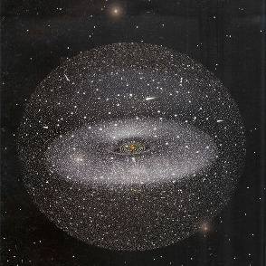 Din îndepãrtarea aceasta, Soarele poate pãrea doar o altã stea. Dar își exercitã atracția sa gravitaționalã asupra miliardelor de comete înghețate, rãmãșițe ale formãrii sistemului solar de acum aproape 5 miliarde de ani. Se numește Norul Oort.